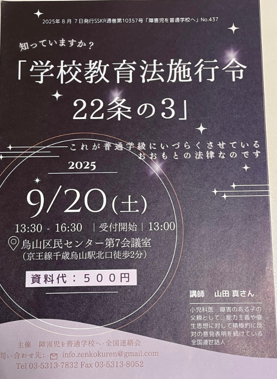 ★知っていますか?「学校教育法施行令22条の3」★ これが普通学級にいづらくさせているおおもとの法律なのです。